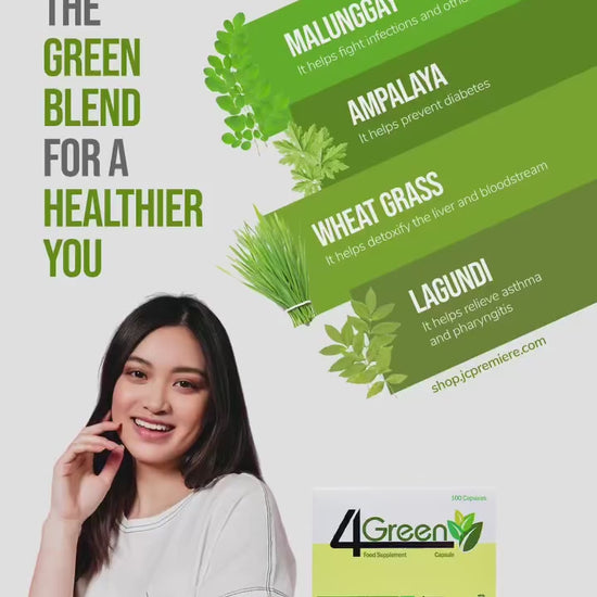 4Green contains Wheat Grass, Malunggay, Ampalaya and Lagundi. These four plants were combined together to create the overall cleansing supplement of the digestive and circulatory system. It helps alkalize and eliminate acidity in our digestive tract. It helps neutralize the toxins in our circulatory system through the high chlorophyll content of these plants.